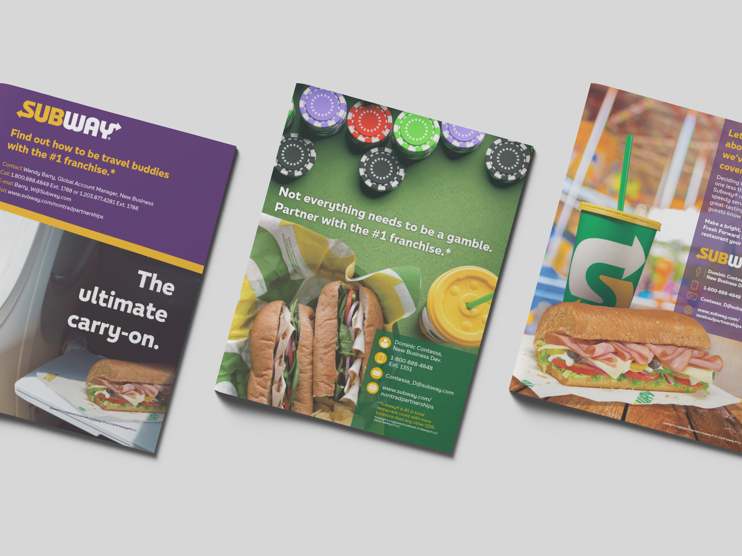 We partnered with Subway’s international brand and operations teams to strengthen communication with current and prospective franchisees. Our work spanned more than fifty multilingual B2B campaigns, each adapted across eleven languages for regional markets. We also developed over 50 pieces of training and onboarding collateral, giving internal teams clear, consistent tools to support franchise growth. Our design systems balanced brand fidelity with global flexibility—ensuring every market could customize content without compromising quality or clarity.